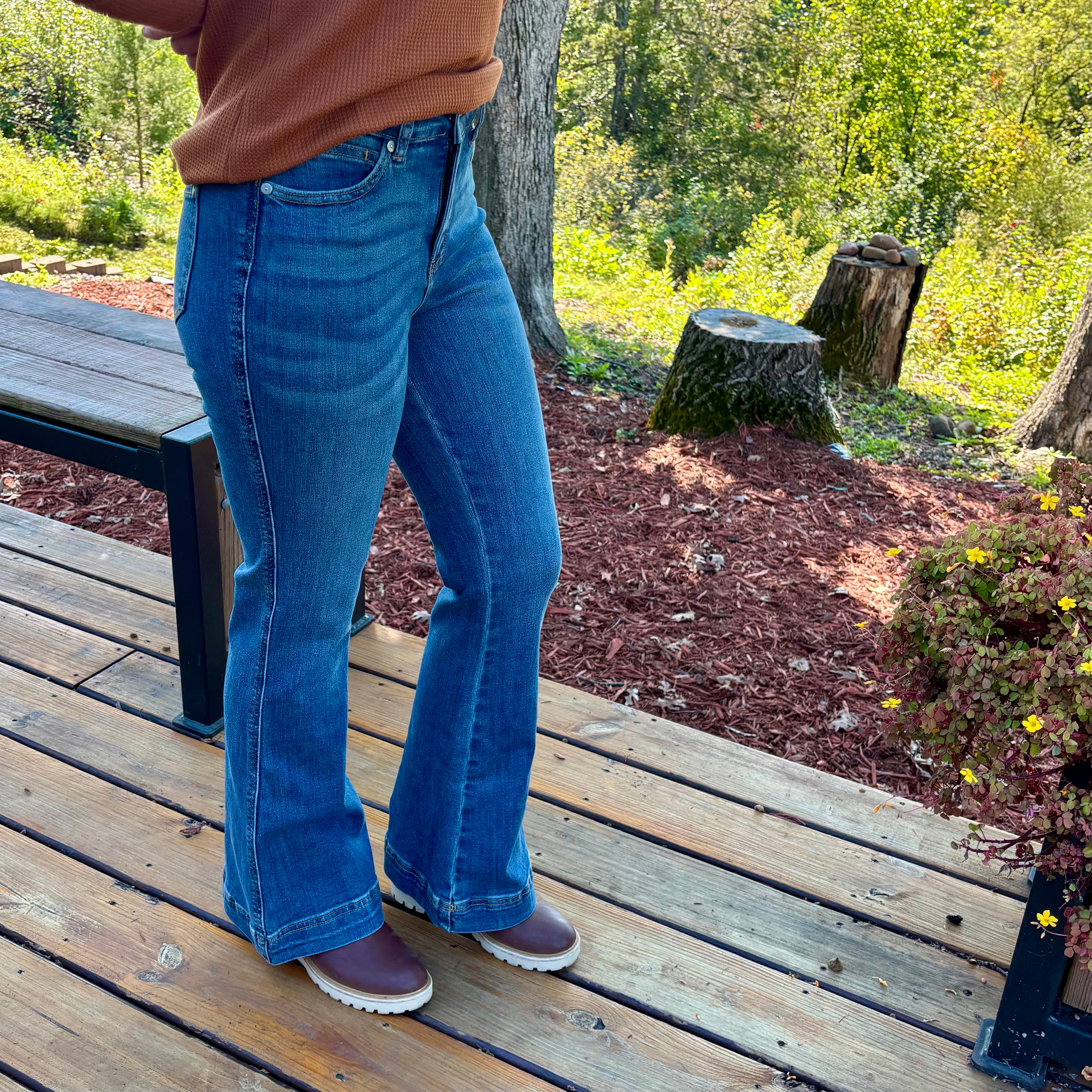 Judy Blue Petite High Rise Tummy Control Double Button Flares – Gretchen's Size Inclusive Boutique