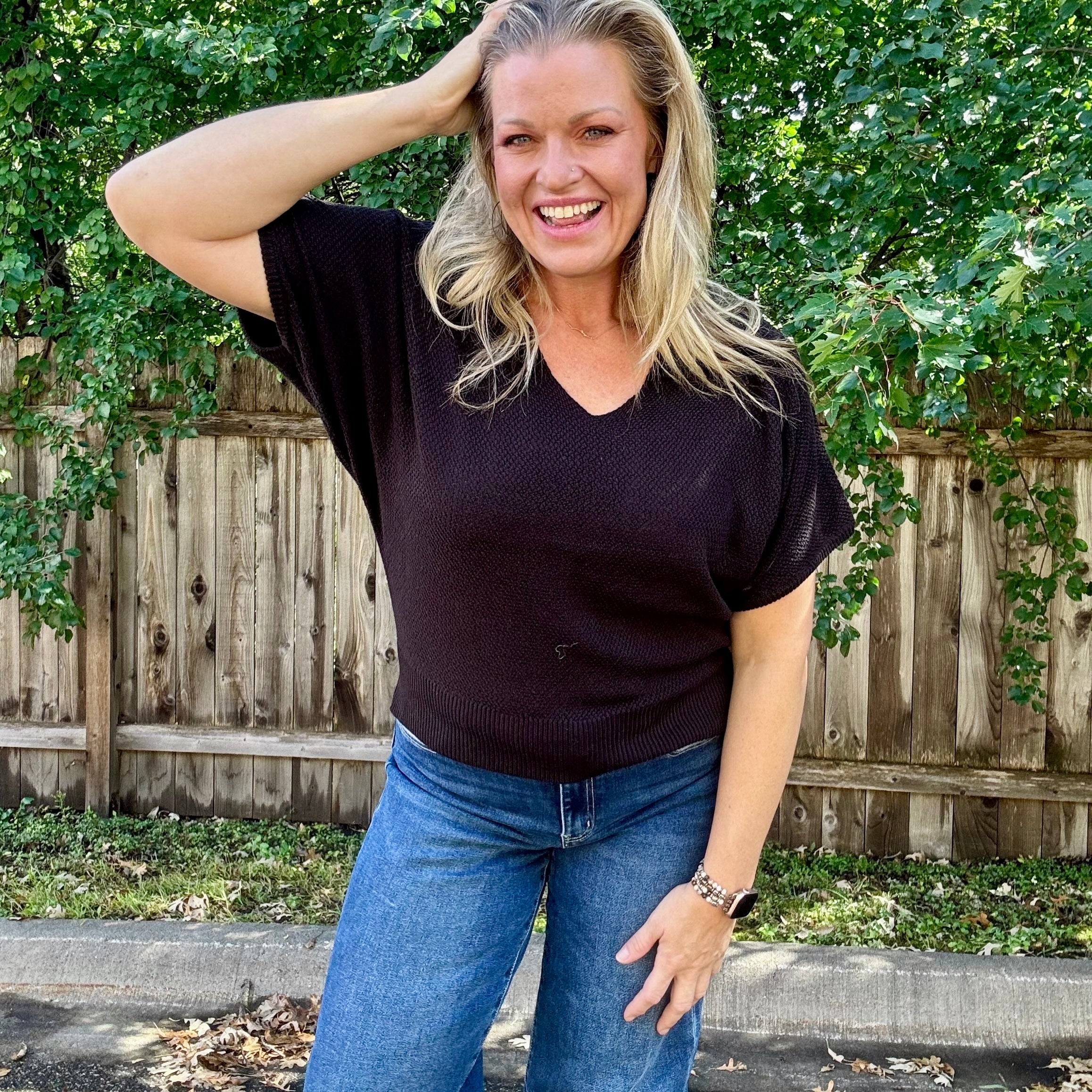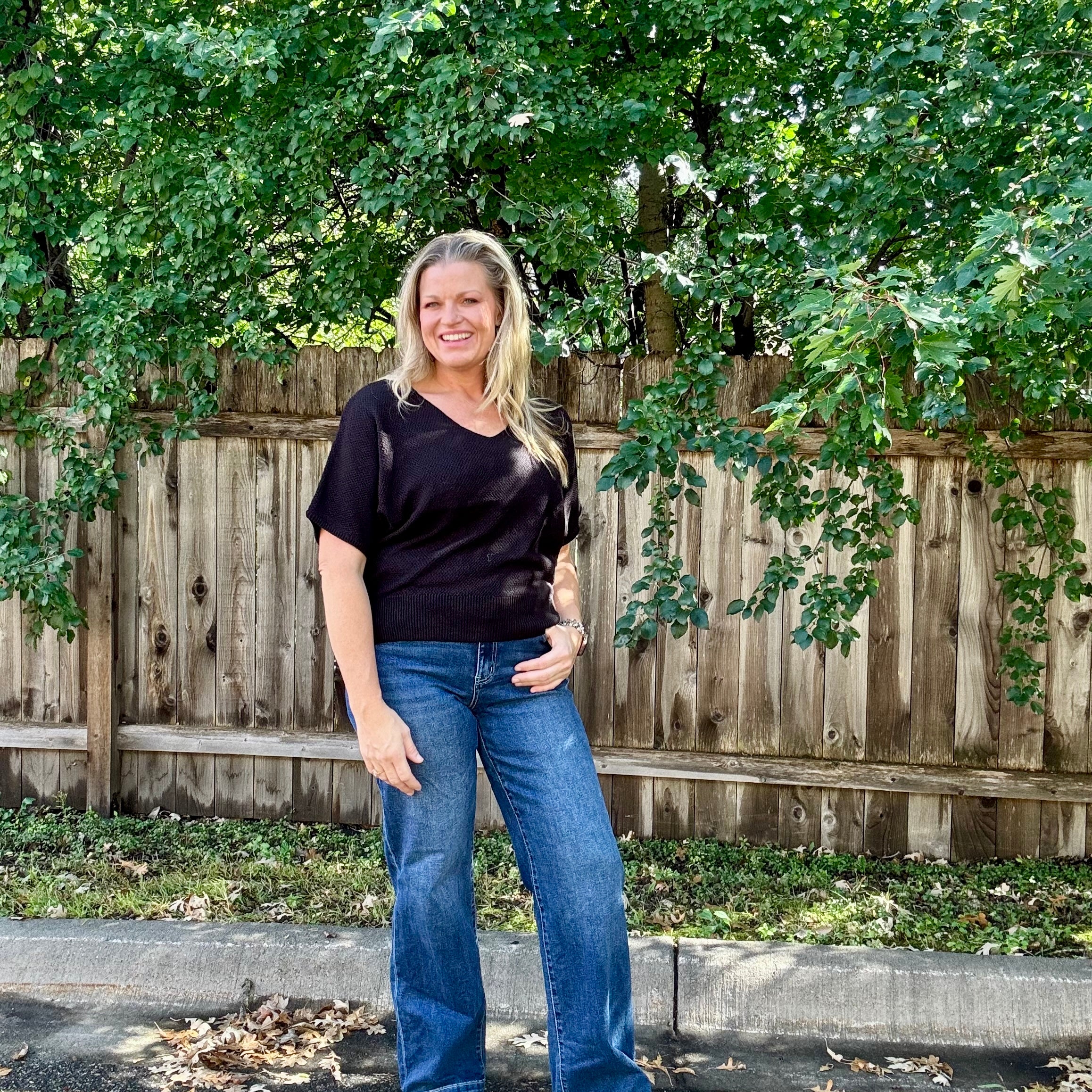 Black Sleeve V-Neck Dolman Sweater