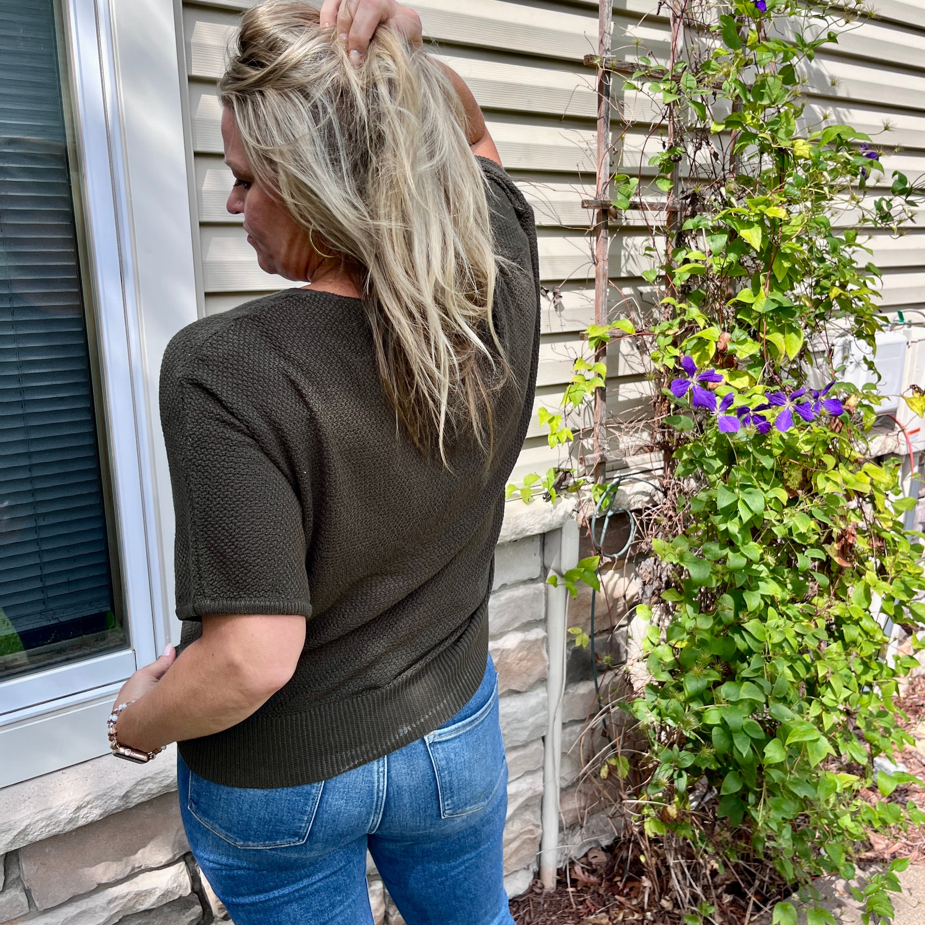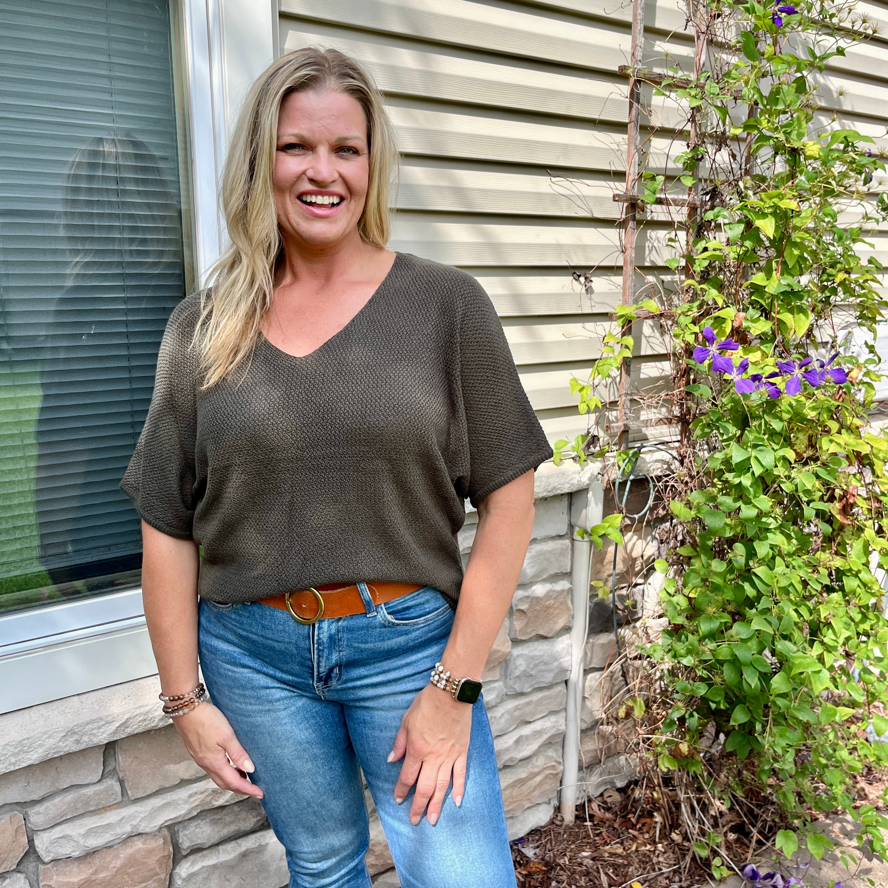 Olive Short Sleeve V-Neck Dolman Sweater – Gretchen's Size Inclusive Boutique