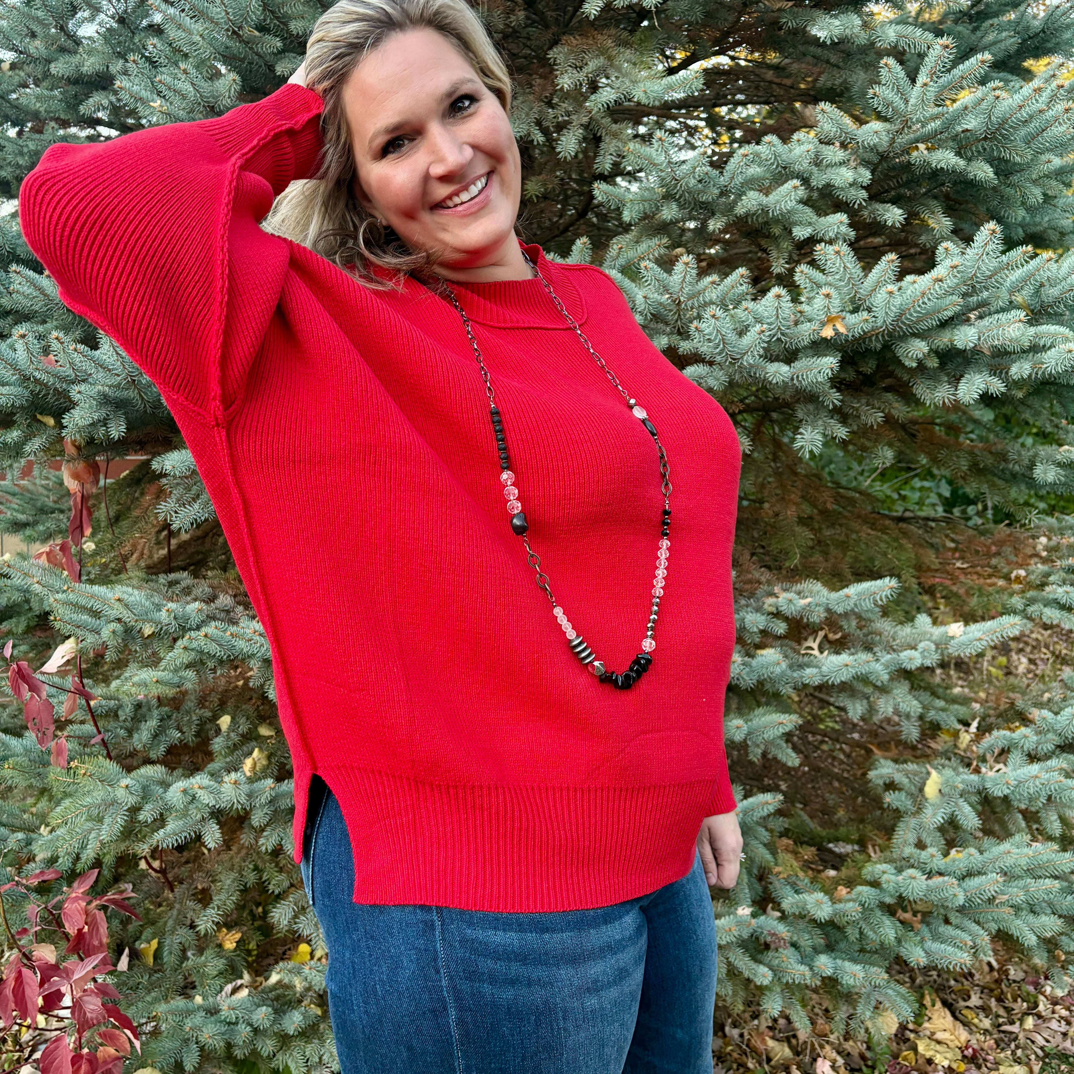Red Oversized Sweater with Side Slit – Gretchen's Size Inclusive Boutique