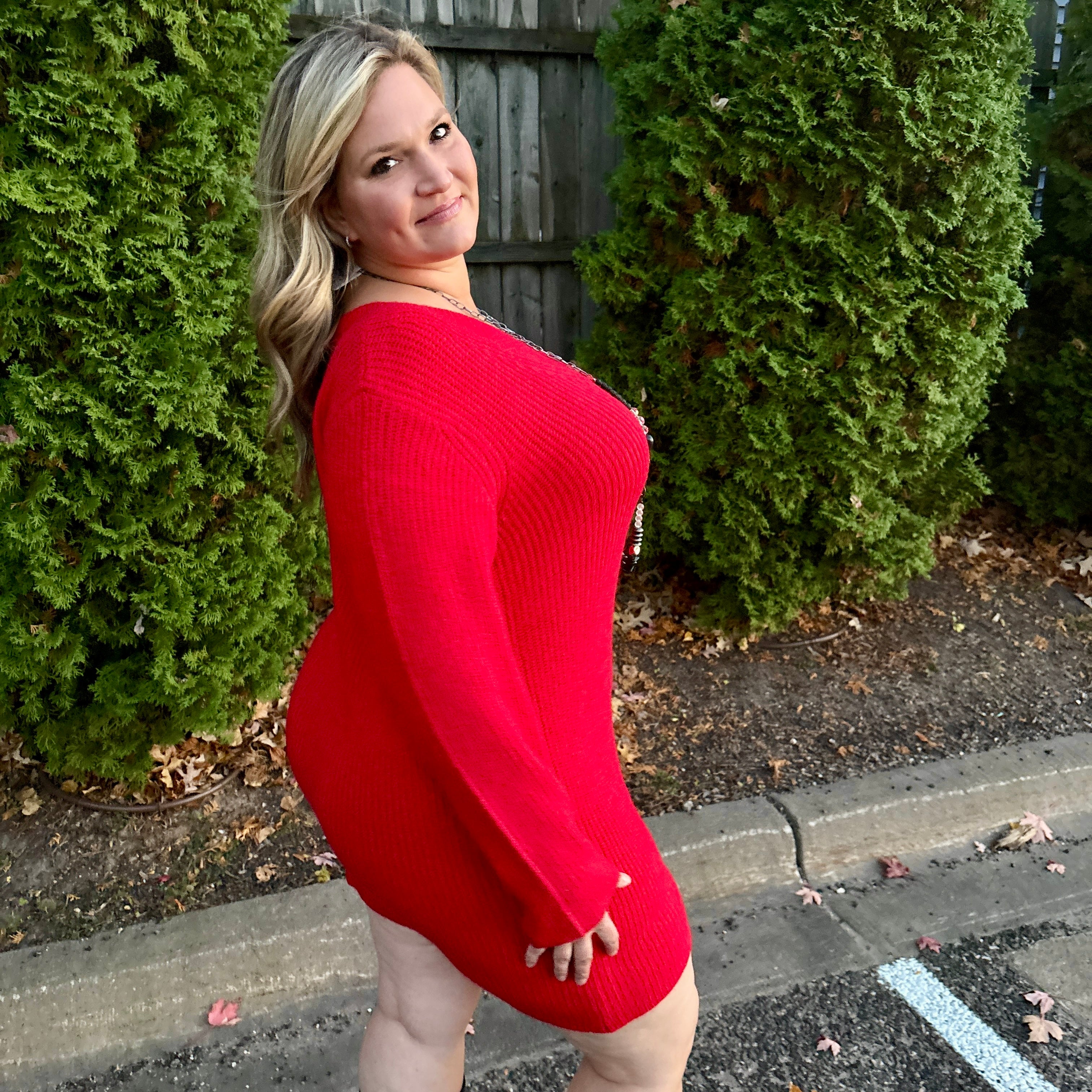 Red V-Neck Sweater Dress – Gretchen's Size Inclusive Boutique