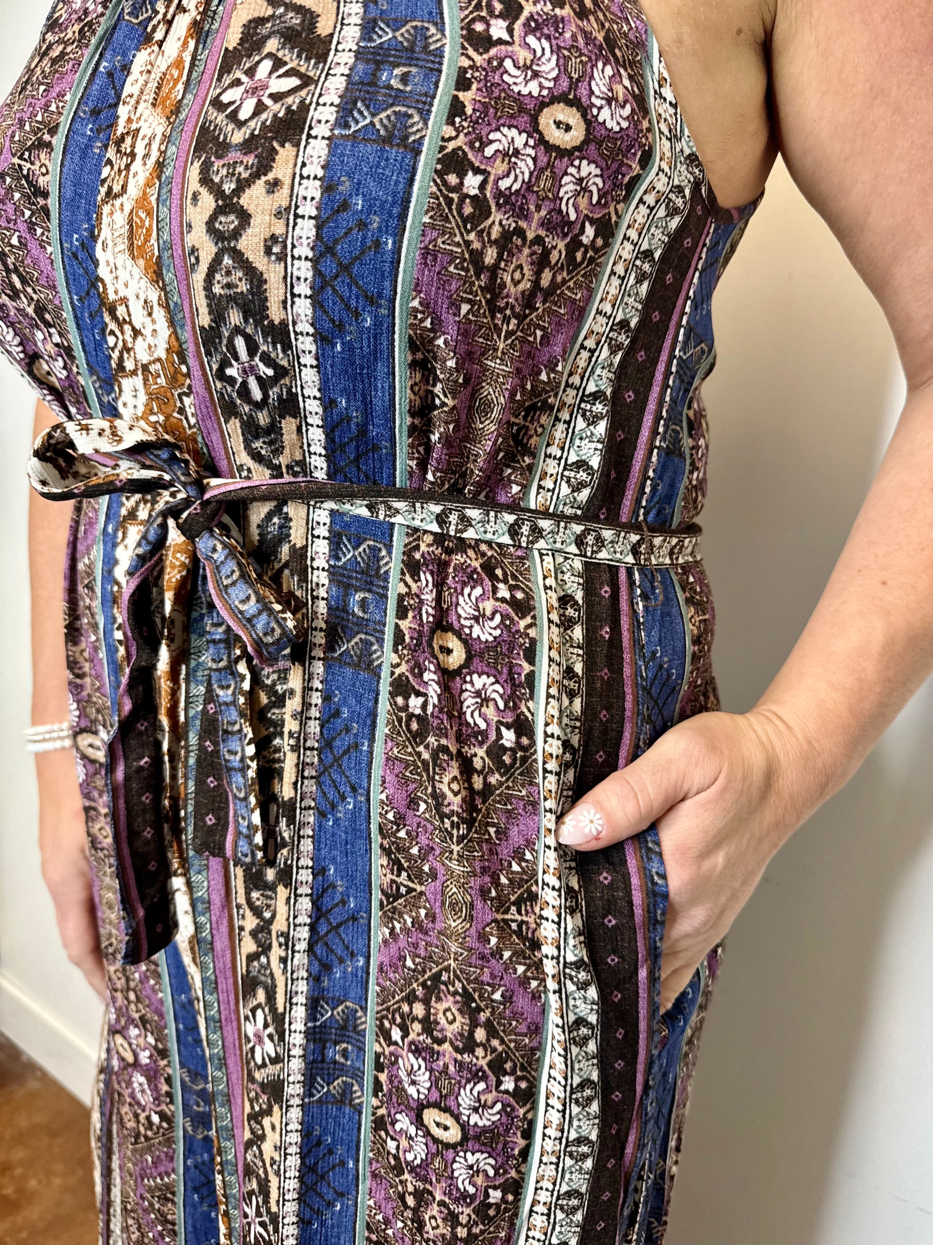 Purple/Blue Aztec Print Wide Leg Jumpsuit