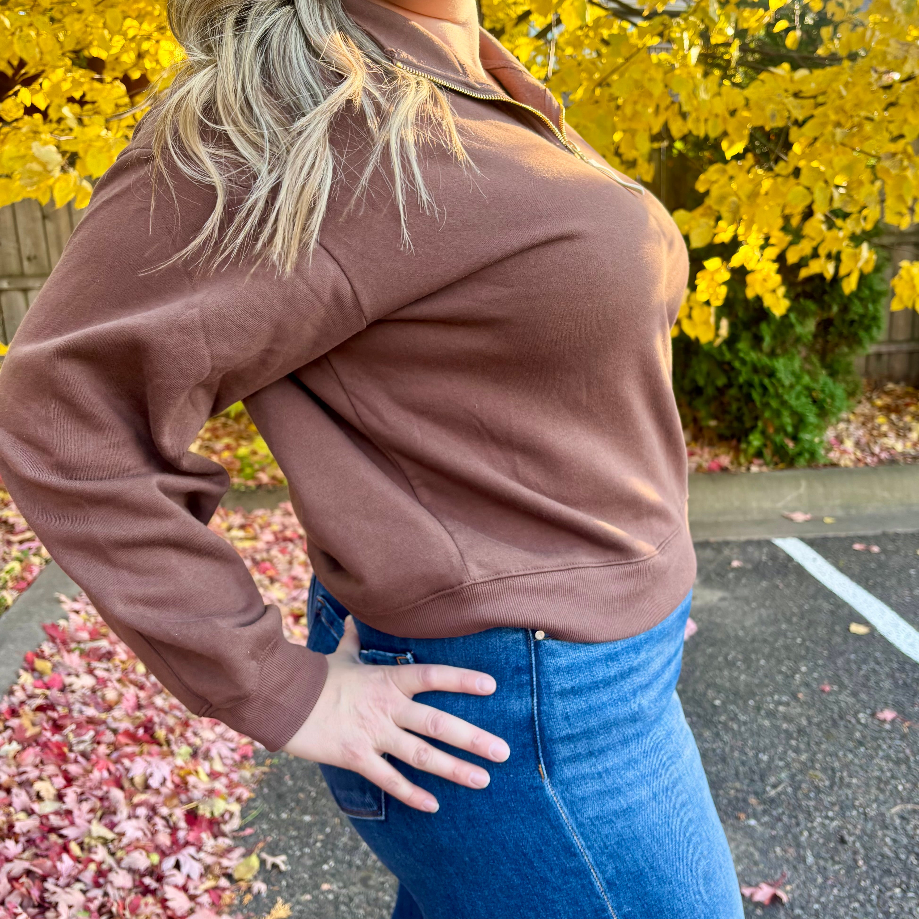 Brown Fleece Half Zip Sweatshirt – Gretchen's Size Inclusive Boutique