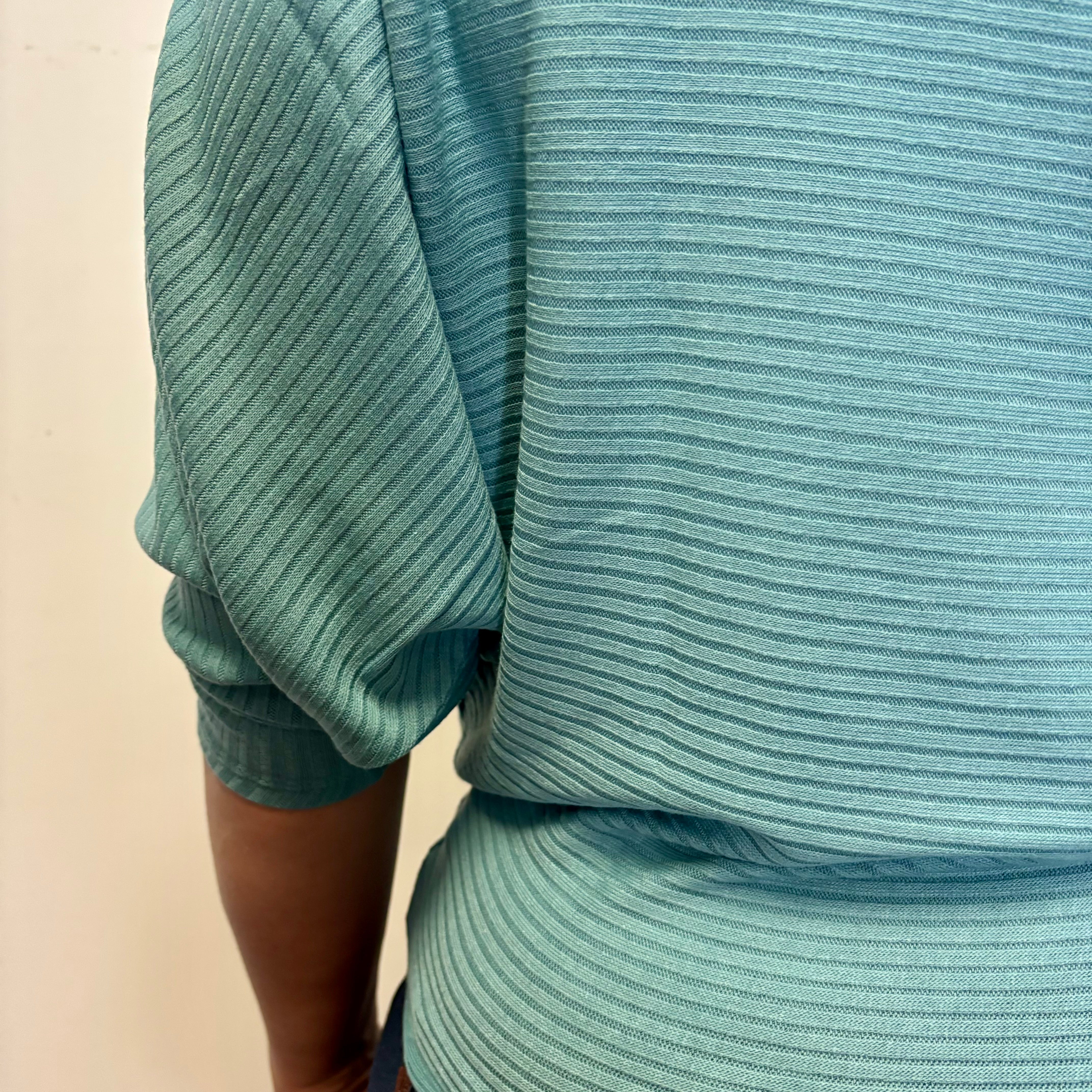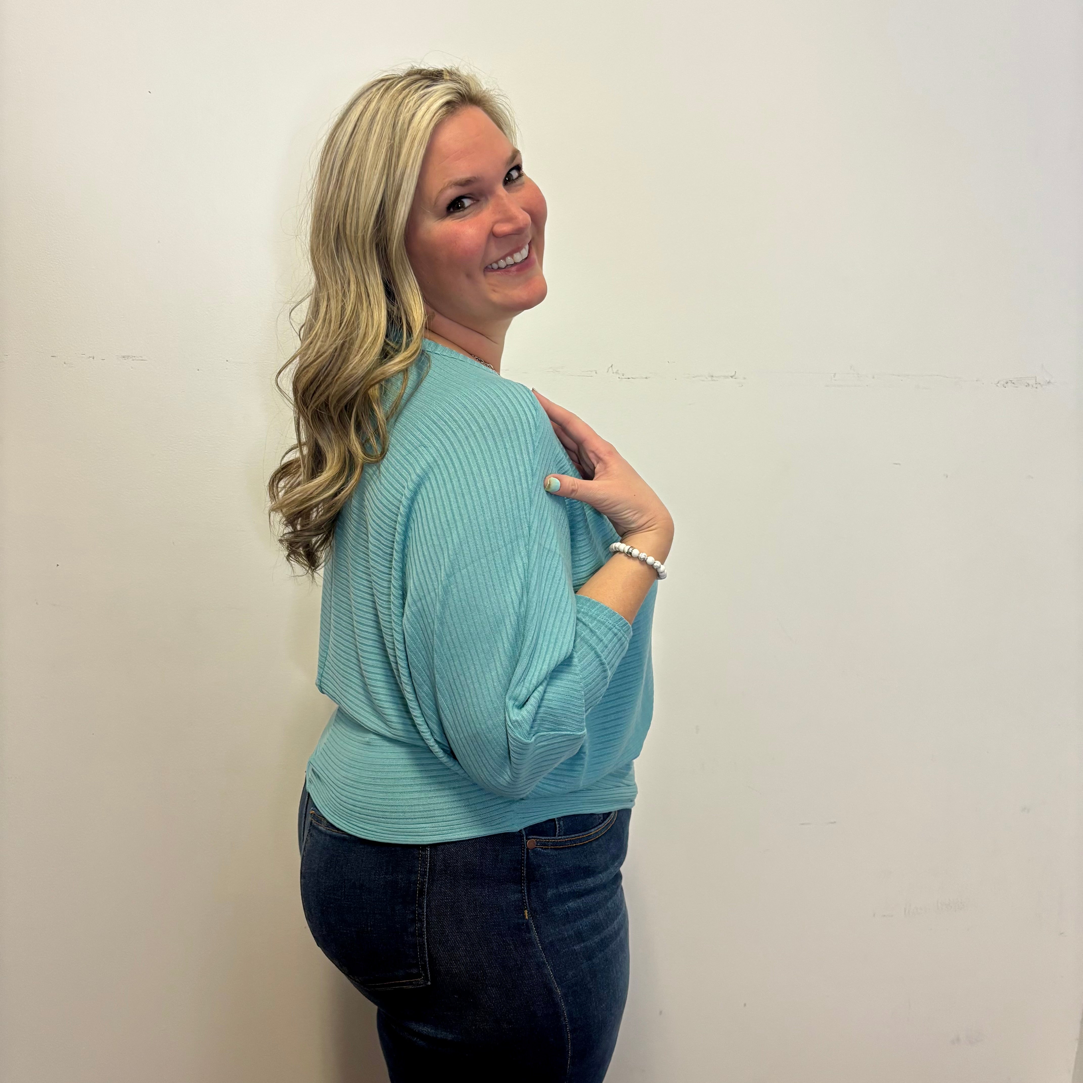 Dusty Teal Ribbed 3/4 Sleeve Dolman Top