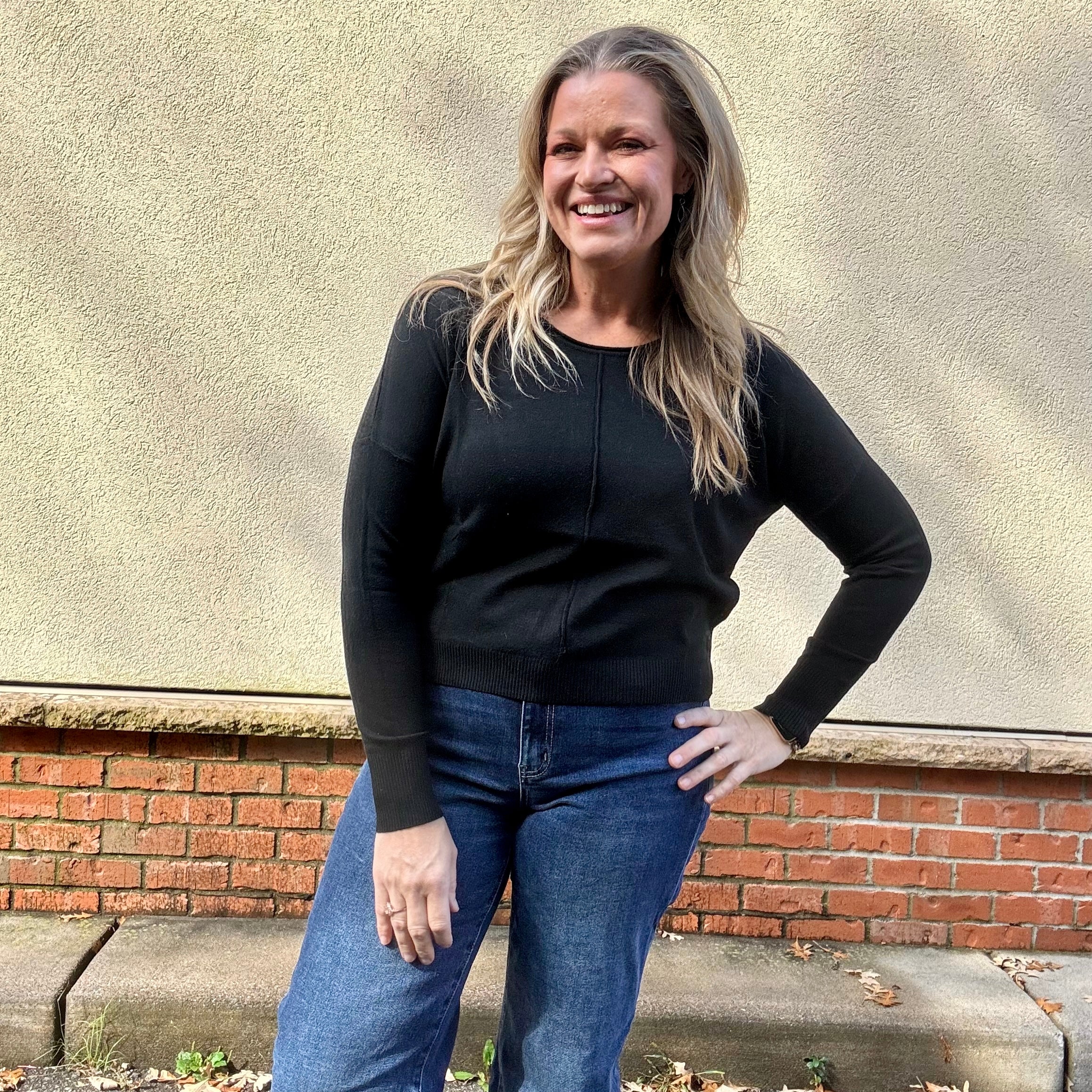 Black Front Seam Round Neck Sweater – Gretchen's Size Inclusive Boutique