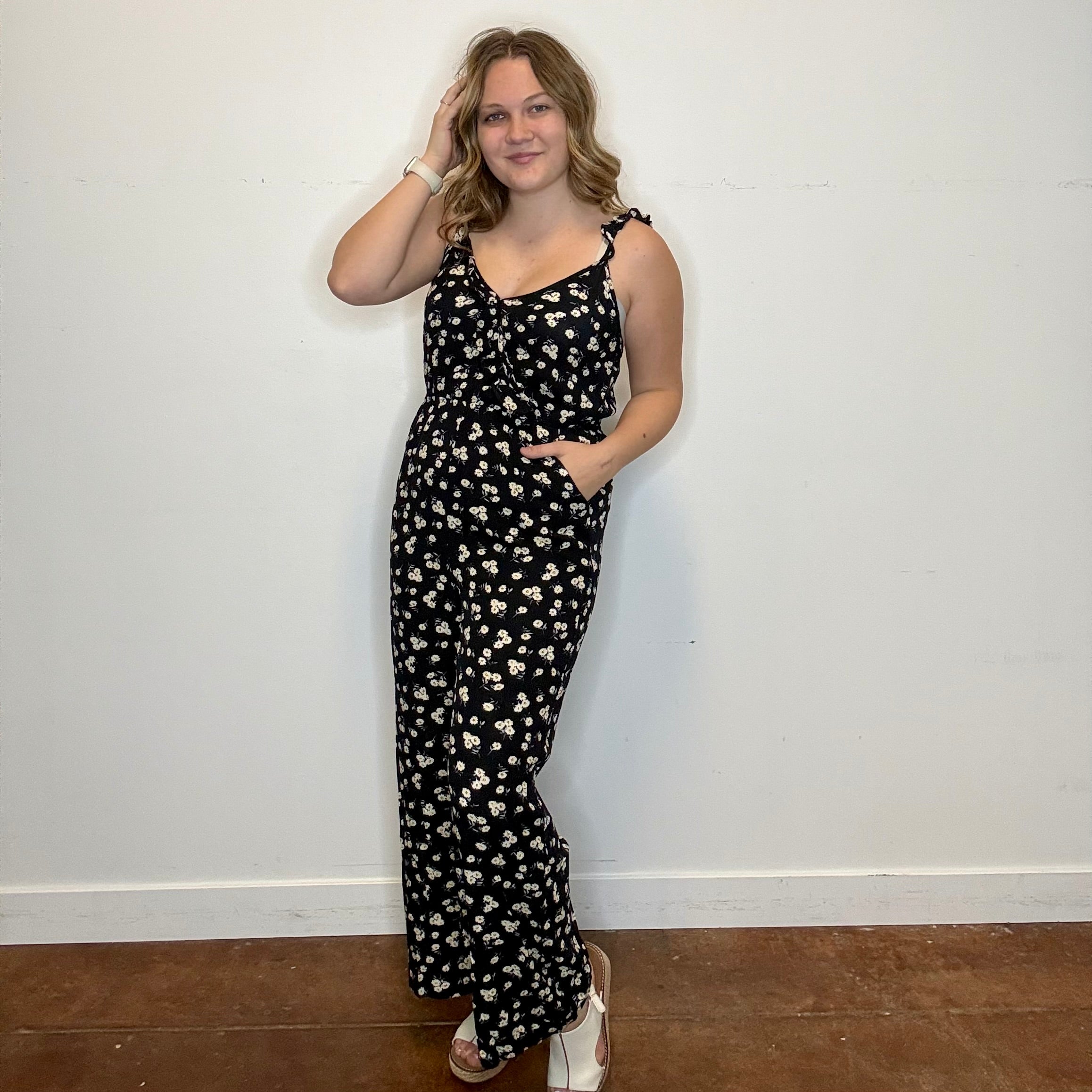 Daisy Flower Surplice Jumpsuit