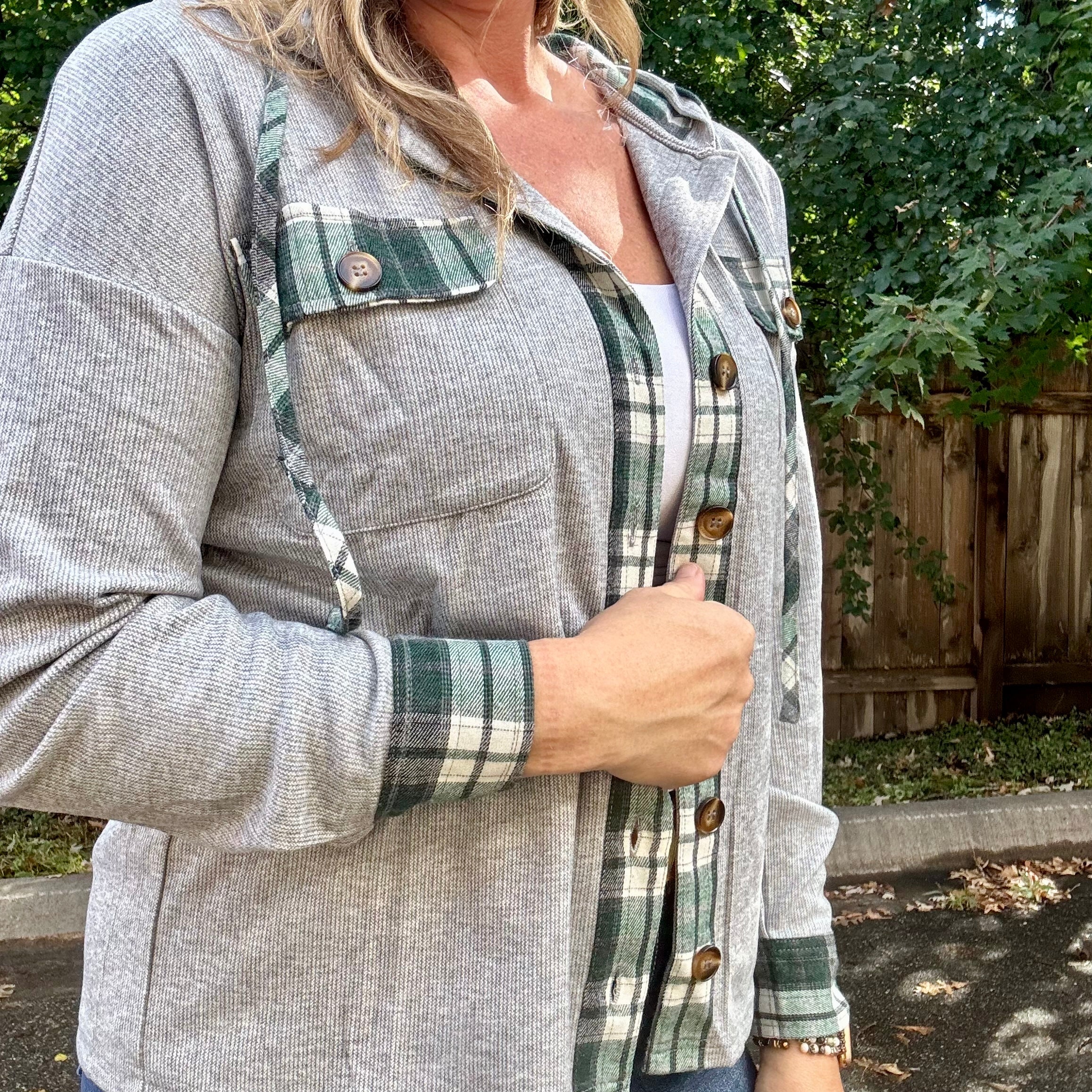 Grey Hooded Shacket with Plaid Details – Gretchen's Size Inclusive Boutique