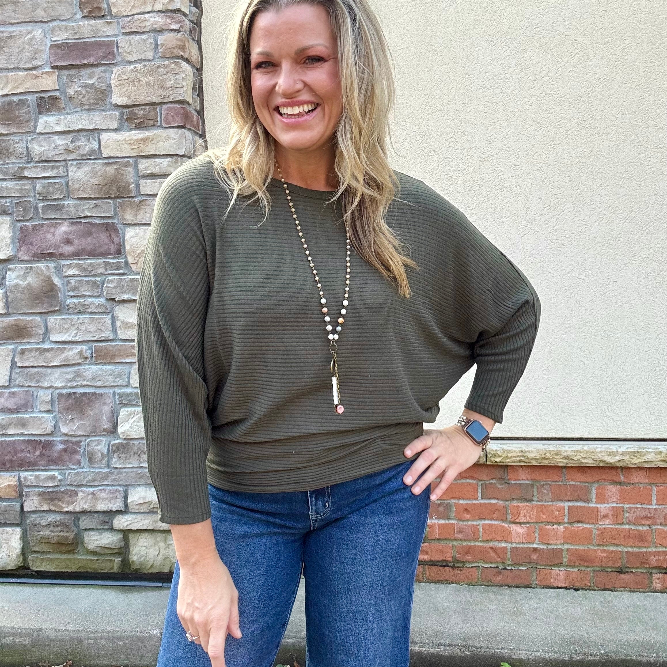 Olive Ribbed Dolman Long Sleeve – Gretchen's Size Inclusive Boutique