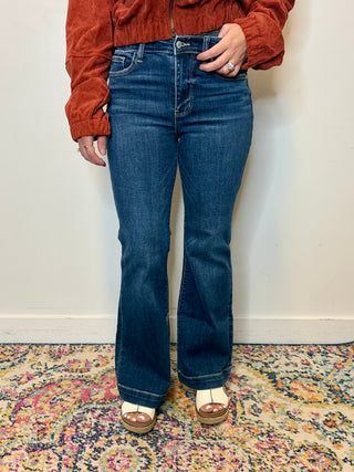 Judy Blue Petite High Rise Tummy Control Double Button Flares