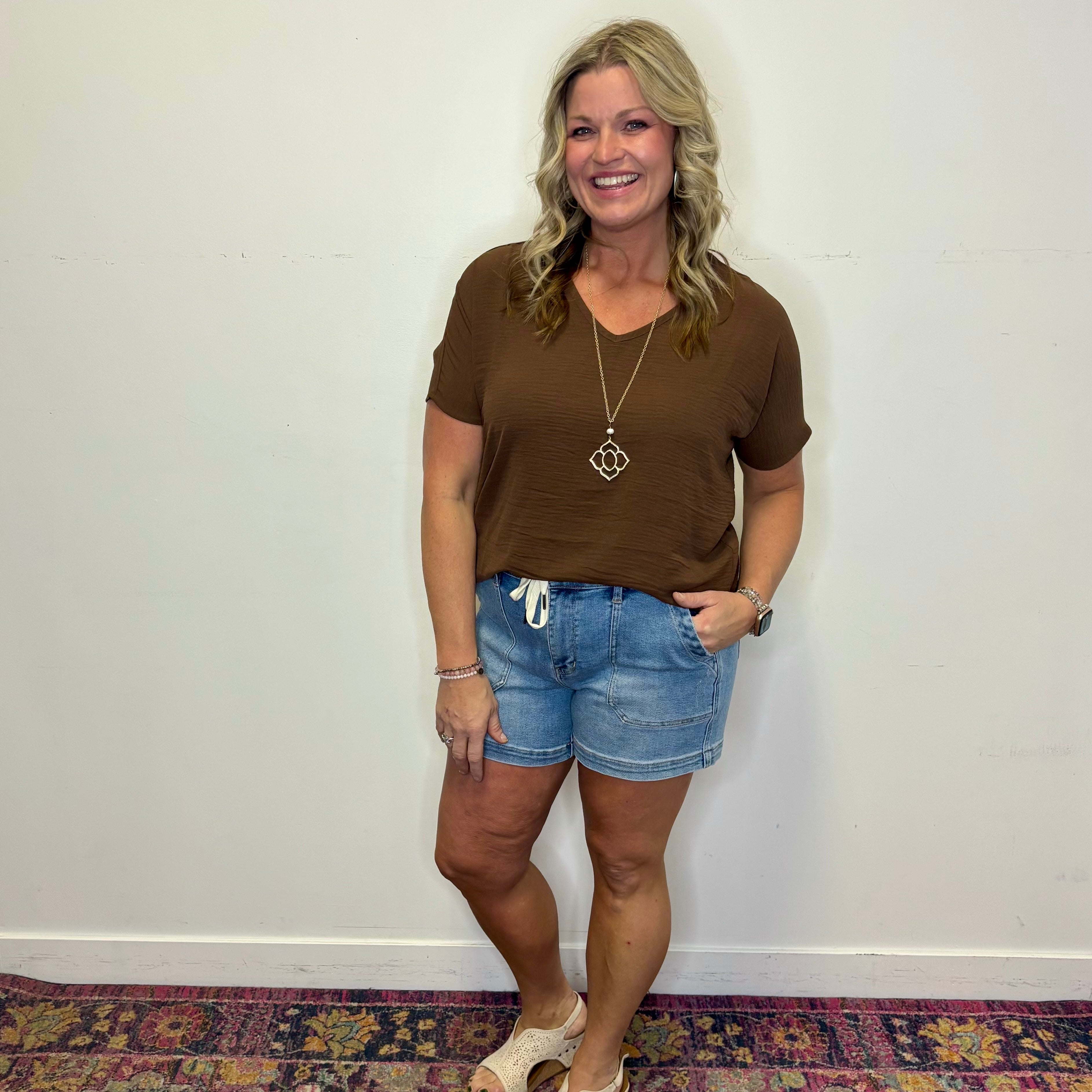 Breathe easy in this laid-back woven short sleeve that's all about comfort and style. The relaxed fit gives you room to move without the fuss, while the classic V-neck adds a touch of effortless sophistication. Perfect for casual days when you want something that feels as good as it looks. Lightweight and versatile, it's a wardrobe staple that works with everything.