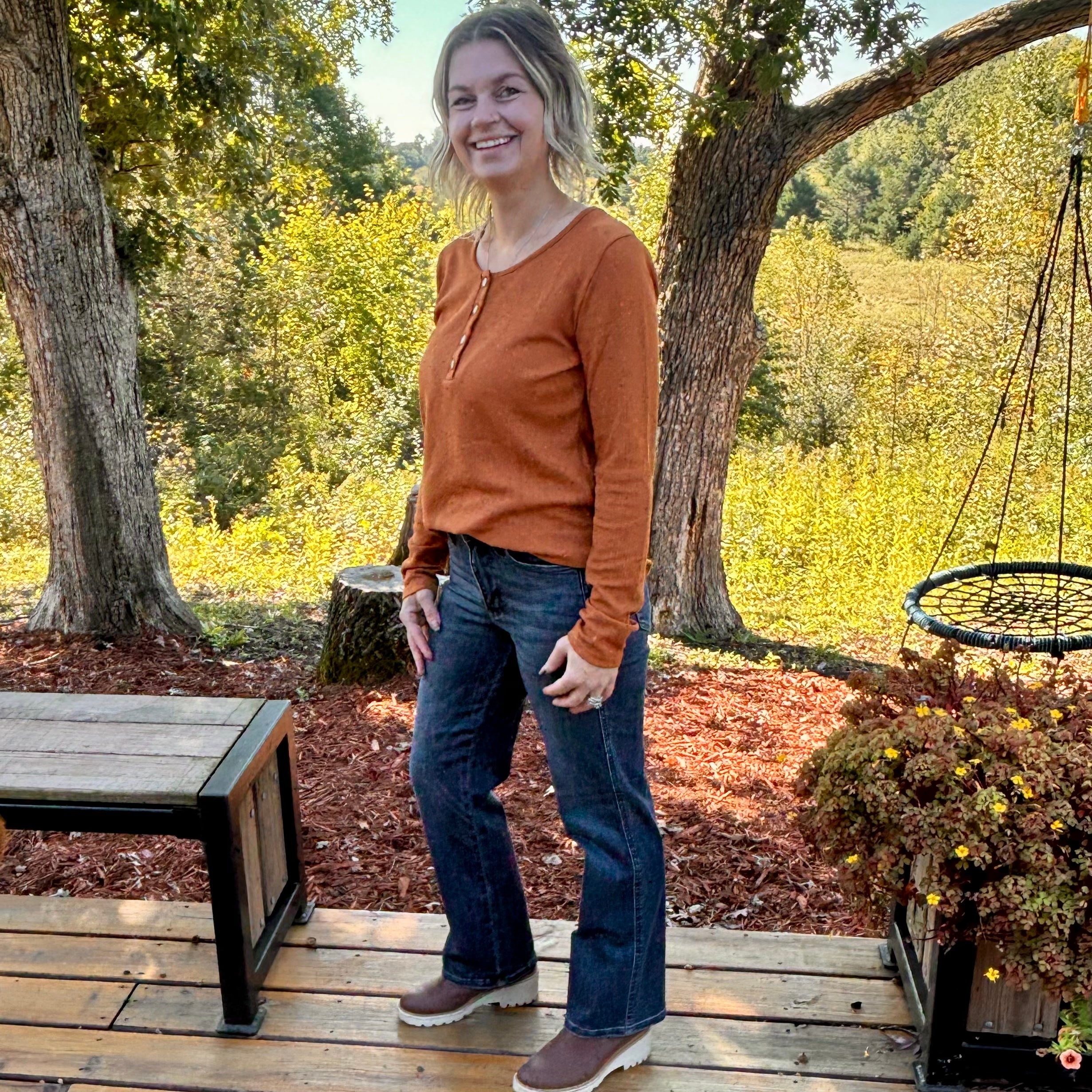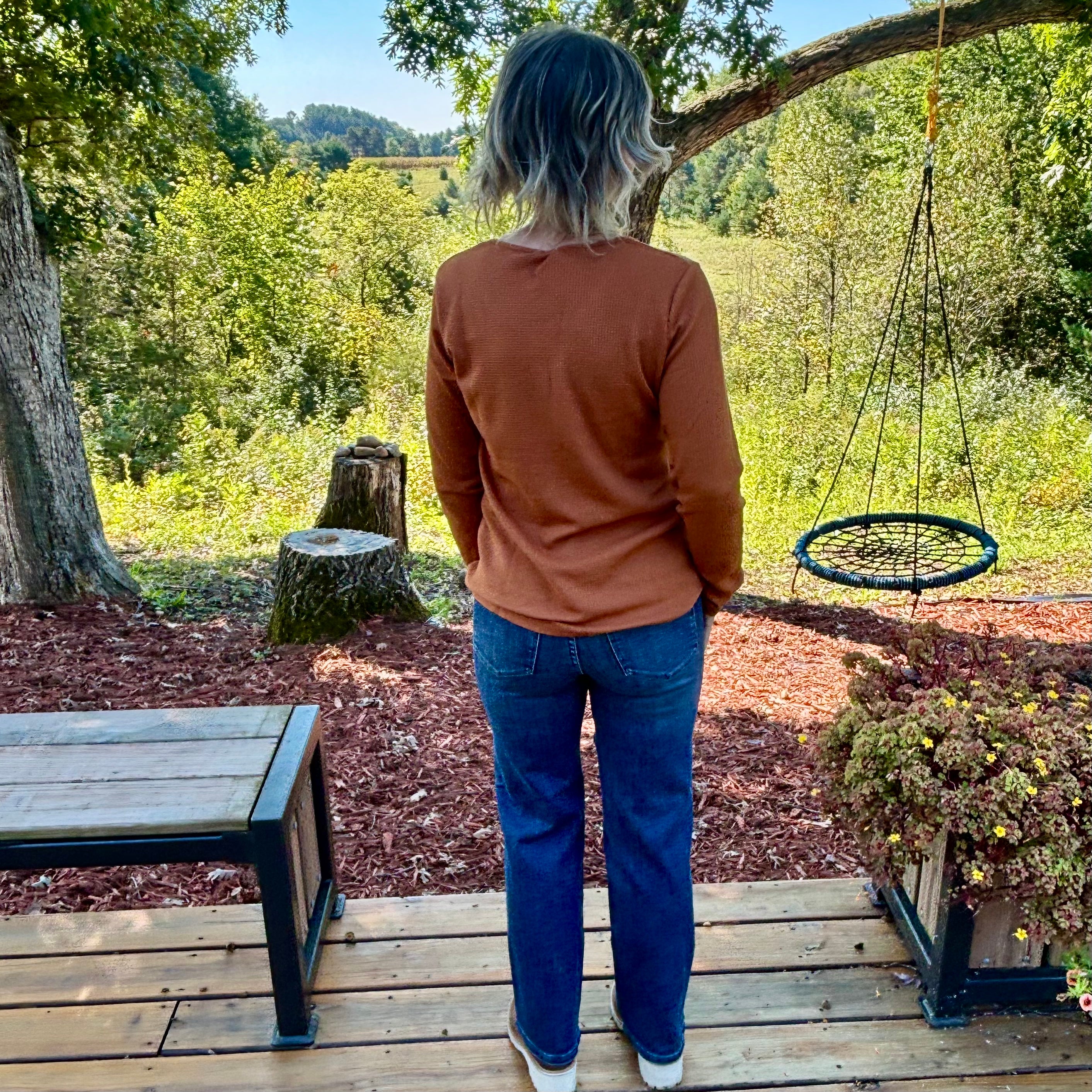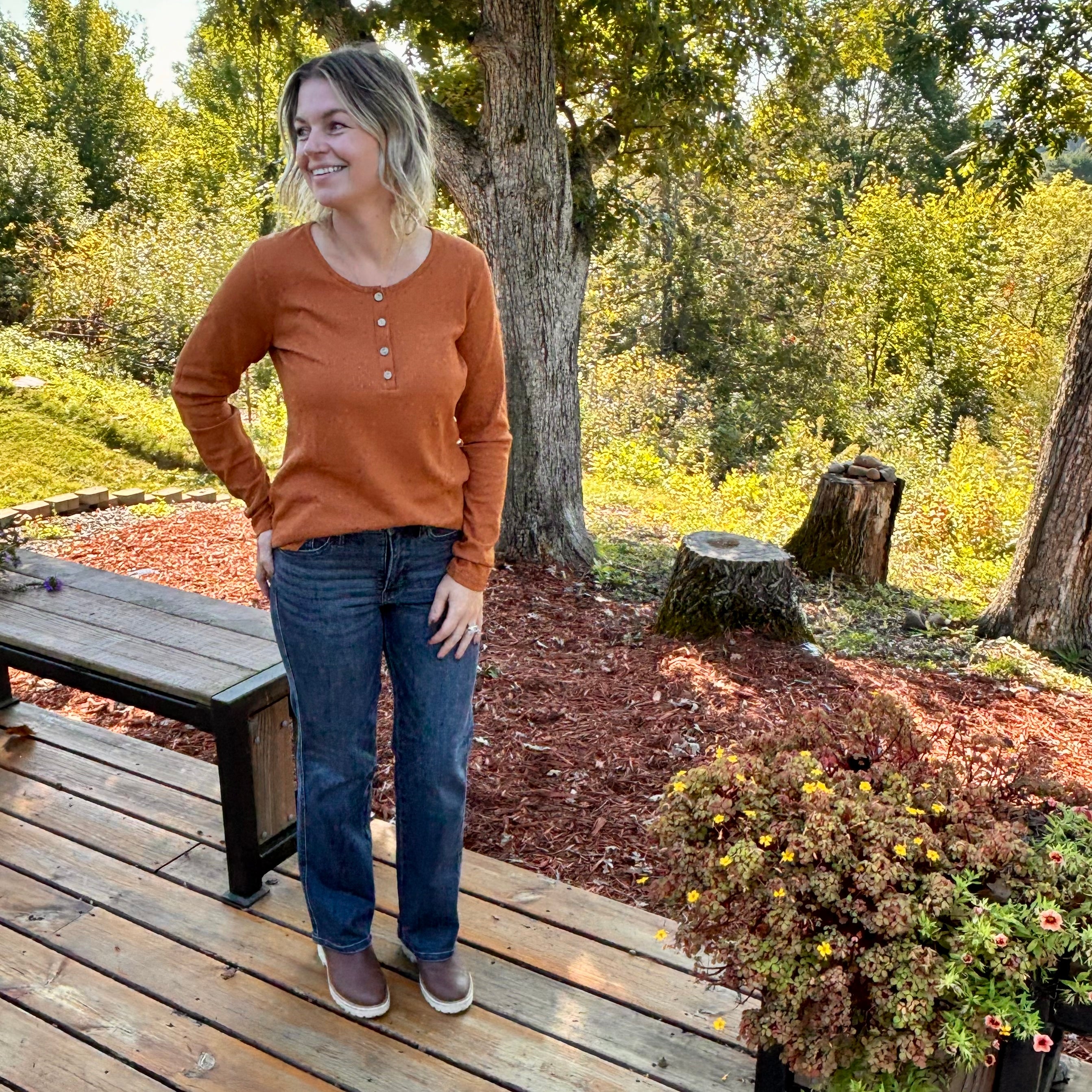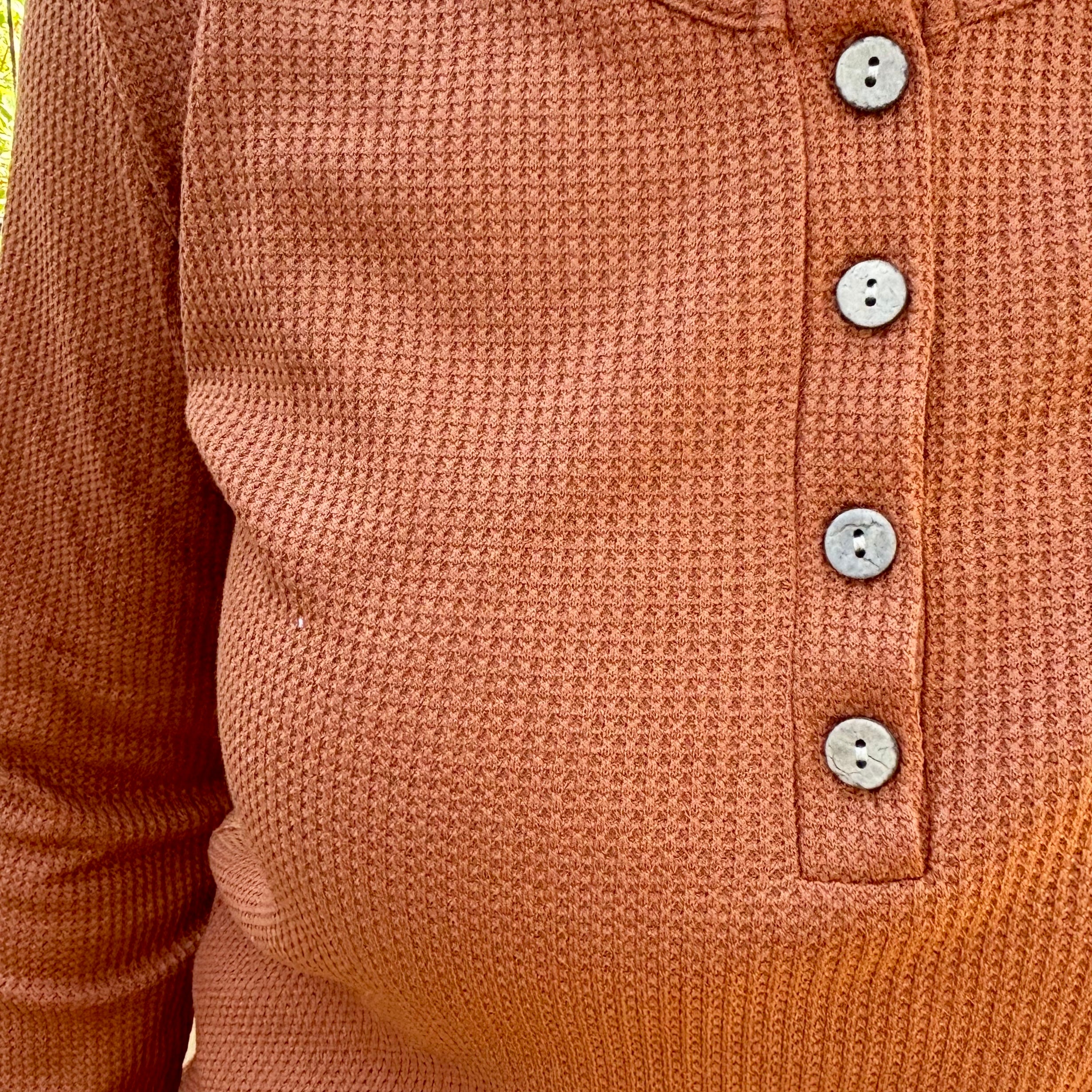 Orange Waffle Knit Button Neck Pullover Long Sleeve Top – Gretchen's Size Inclusive Boutique
